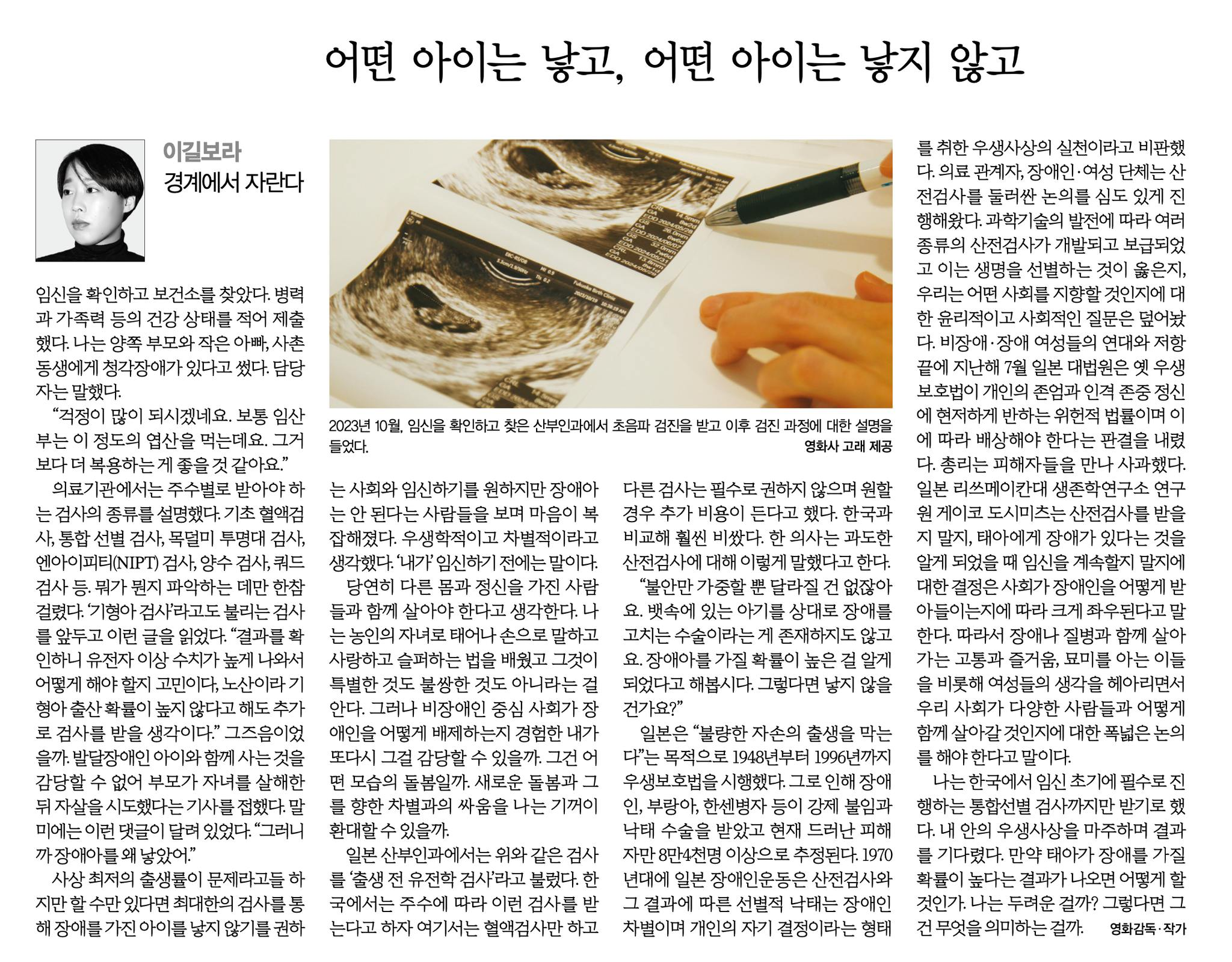 [한겨레] 어떤 아이는 낳고, 어떤 아이는 낳지 않고 (이길보라)